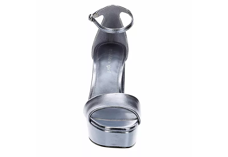 Set the tone in the Omega women’s platform sandal from Madden Girl. With a metallic faux leather upper featuring a square toe for extra style, this ankle buckle strap sandal is retro-inspired but will elevate your current fashion trends. The chunky platform heel stands 4 1/2″ tall and looks fantastic with jeans, miniskirts, and dressy shorts.